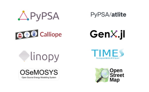 We develop, co-maintain, and apply widely used open-source tools while supporting a broad range of modeling platforms to meet diverse needs. We also build secure, open-source applications that integrate proprietary data, ensuring accessibility, privacy, and local self-maintenance without requiring public sharing. As co-maintainers, we contribute to the development of Python for Power Systems Analysis (PyPSA), the PyPSA-based European and global sector-coupled energy systems models PyPSA-Eur and PyPSA-Earth, the Linopy optimization interface and the atlite library for converting weather data to energy systems data. We also use and support a wide range of other energy modeling tools such as GenX, Switch, OSeMOSYS, and Calliope.
